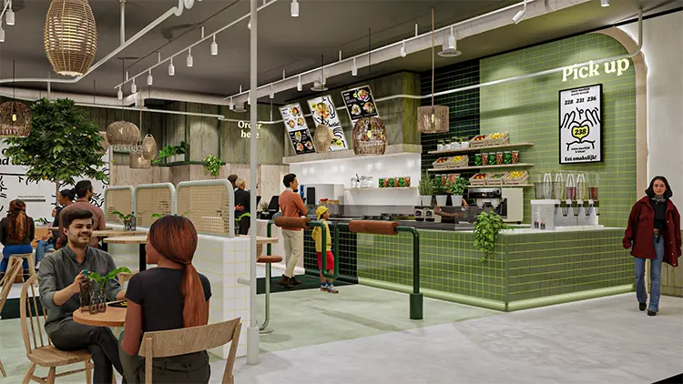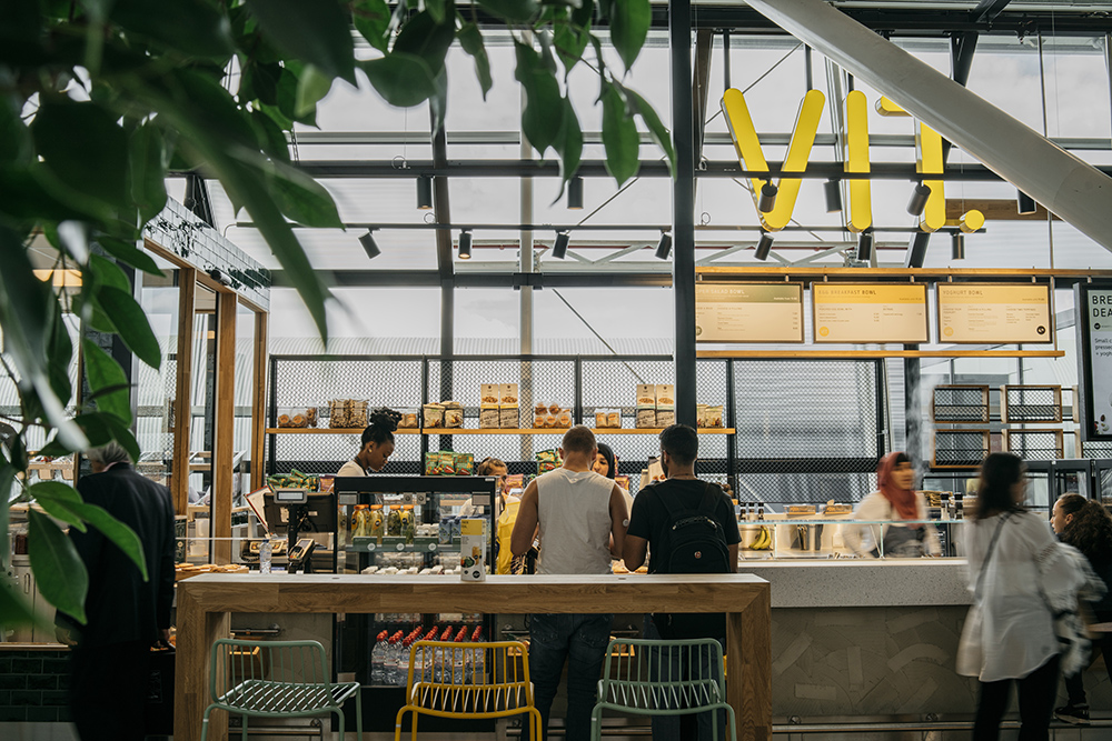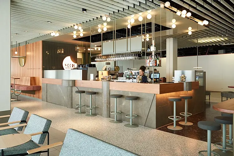 Dit multifunctionele fast casual concept voorziet met haar ‘all day’-menu en haar faciliteiten in de ‘mood’ van elk type reiziger op elk moment van de dag; het past zich aan de tijdzone van de reiziger. Meer info